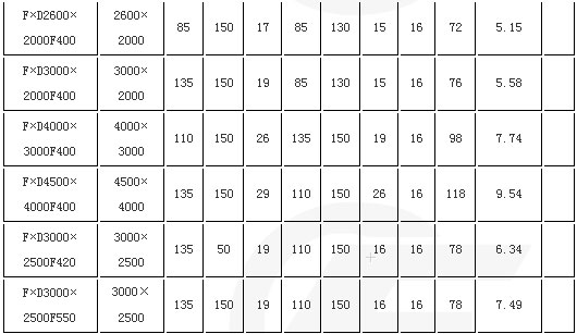 ?。?)FXDA4500×4000F400表示方形非金屬補(bǔ)償器,長(zhǎng)期工作≤100°C,內(nèi)壁為4500×4000mm,法蘭連接產(chǎn)品長(zhǎng)度400mm。